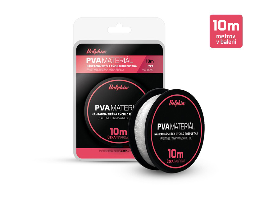 Náhradní, vodou rozpustná PVA síťka od Slovenské značky Delphin v kompaktním balení. Je určena pro uložení vnadící směsi sestávající z krmných boilie, pelet, kukuřice, či jiného partiklu. Připravená směs zabalená v punčoše se připevní k montáži spolu s nástrahou a nahodí se na místa lovu. PVA síťka se po čase přímo úměrném teplotě vody rozpustí a tak uvolní krmnou směs v blízkosti chytací nástrahy, čímž výrazně zvýší její atraktivitu pro kaprovité ryby.
