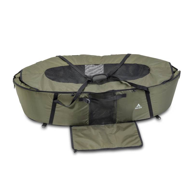 Přenosná podložka s několika skvělými funkcemi. Lze ji velmi rychle rozložit a díky připraveným popruhům snadno připevnit k zemi. Po celém vnitřním obvodu je voděodolné polstrování z pevné pěny, které tlumí nárazy mrskající se ryby. Díky odtoku můžete veškerou přebytečnou vodu snadno vypustit. Samozřejmostí je i plachta na zakrytí a podložka na kolena. Celkově vzato se jedná o multifunkční podložku, kterou využije každý rybář, kterému není osud ulovených ryb lhostejný.