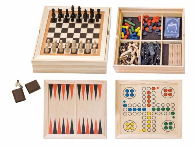 V jedné elegantní krabici najdete klasické stolní hry, které baví generace - od strategických šachů, přes zábavné Člověče, nezlob se, až po klasické vrhcáby či backgammon. Součástí balení jsou také dámové kameny, mlýn, domino kameny a hrací karty. Navíc je vše doplněno přehledným návodem ke všem hrám, takže můžete začít hrát okamžitě, bez složitého hledání pravidel.
