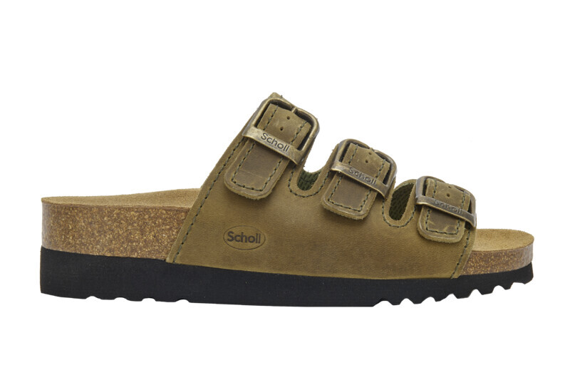 SCHOLL Rio AD jsou lehké a pružné klasické pantofle s korkovou podrážkou a koženým svrškem s textilní podšívkou. Mají podrážku Bioprint Adapta - jedná se o anatomickou strukturu ve stélce, s dobrou oporou pro klenbu chodidla a to i v oblasti palce.Scholl Rio AD poskytuje velmi dobrou stabilitu.Pantofle mají silnou korkovou tvarovanou podrážku, což poskytuje příjemné odlehčení zádům. Žebrovaná podešev EVA je vyplněna malými vzduchovými bublinkami a poskytuje dobré odpružení a lehkost v každém krokuScholl Rio AD dobře padnou i na užší nohu díky třem nastavitelným kovovým přezkám.Scholl Rio AD jsou pantofle, který se často používají jako pracovní - například ve škole a při poskytování zdravotní péče. Pantofle se dobře hodí jako pracovní obuv v zaměstnáních, kde se zdržujete v suchém prostředí a kde přes den hodně chodíte i stojíte na tvrdých podlahách.Šíře: F