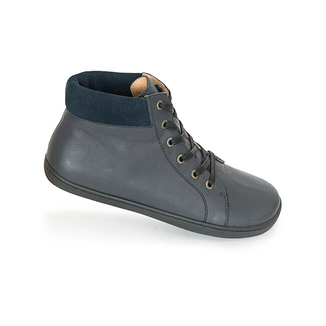Dámská barefootová vycházková obuv Margit black má gumovou, měkkou a ohebnou podrážku. Bota je kolem kotníku polstrovaná s mírně zpevněnou patou. Obuv je celoroční a vyrobena z hladké kůže.