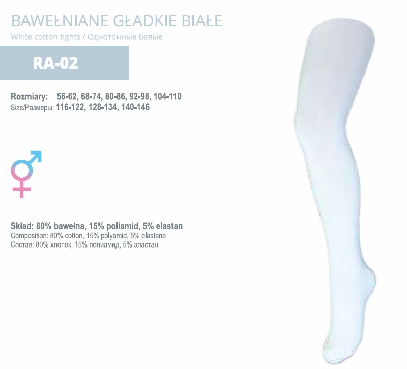 SCORPIO RA-02 Rajstopy bawełniane gładkie białe 80/86