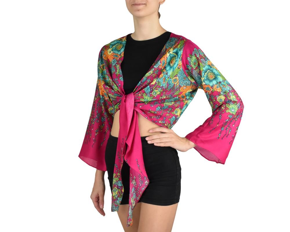 Lehké letní bolerko s dlouhými rukávy a zavazováním pod prsy.Parametry: Délka rukávu: cca 50 cmŠířka ramen: cca 40 cmDélka bolerka: cca 40 cmMateriál: 100% viskózaTextil, který nosíte, položte volně na stůl či jinou rovnou plochu. Změřte v místech dle popisu u zboží. Vypsané rozměry jsou rozměry...