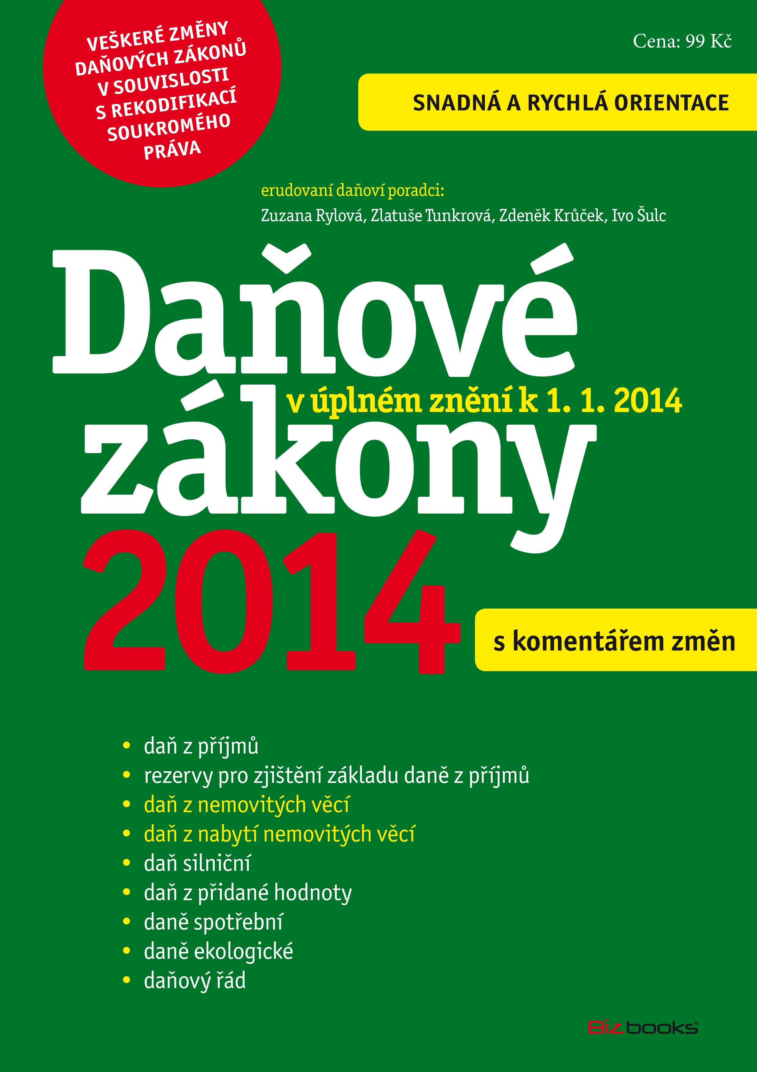 Jakými změnami v daňových zákonech nás překvapí rok 2014? Publikace Daňové zákony 2014 navazuje na osvědčených 9 předchozích vydání. Najdete v ní aktuální úplná znění daňových zákonů. Ty jsou v úvodu doplněny komentáři erudovaných odborníků, které vám pomohou s orientací v provedených změnách....