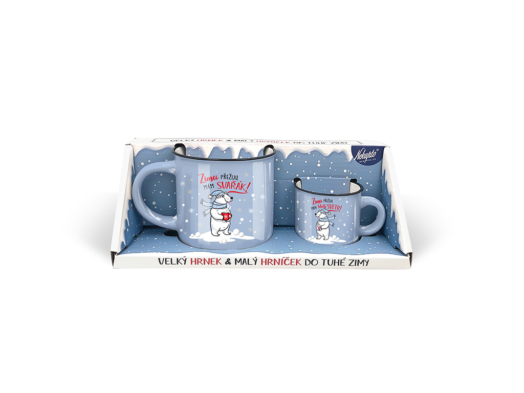 Sada hrnku a mini hrnečku s textem „Zimu přežiju...“.