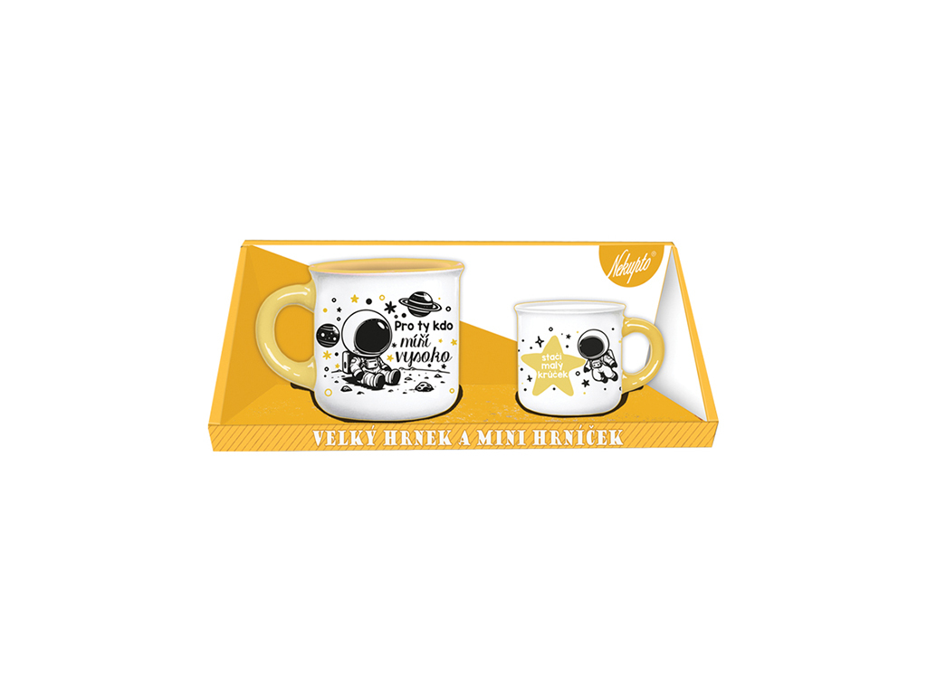 Hledáte dokonalý dárek pro milovníky teplých nápojů? Naše designově sladěná sada hrnku a mini hrníčku je přesně to, co potřebujete.