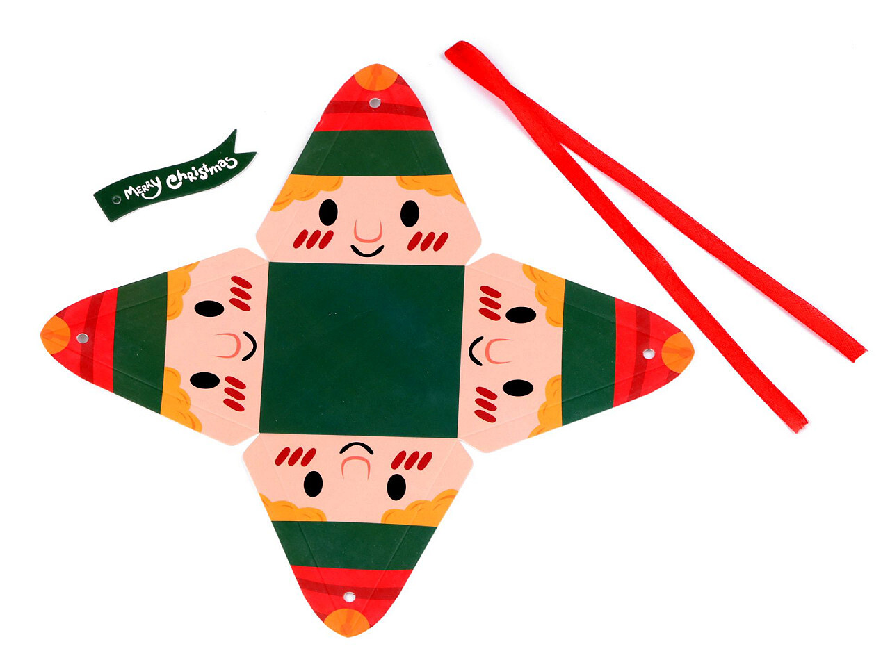 Vánoční dárková krabička pyramida - sob, Mikuláš, sněhulák, skřítek - 10 ks - 4 zelená tmavá skřítek
