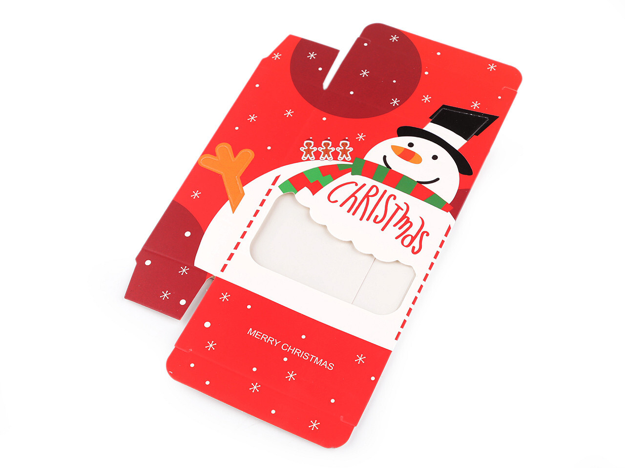 Vánoční dárková krabička s průhledem sněhulák, strom - 12 ks - 1 červená
