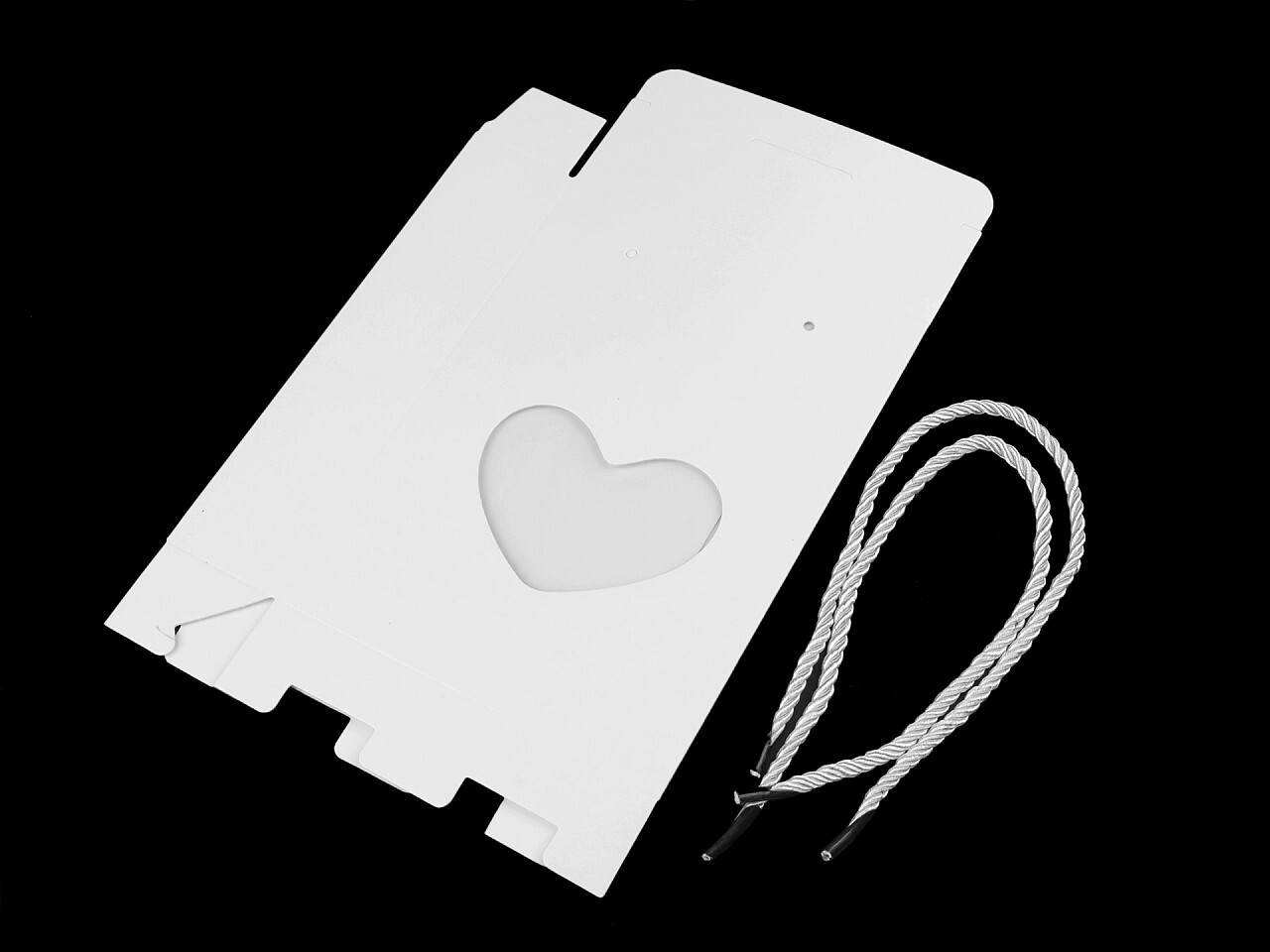 Papírová krabice s průhledem srdce a kroucenou šňůrkou - 4 ks - 1 bílá