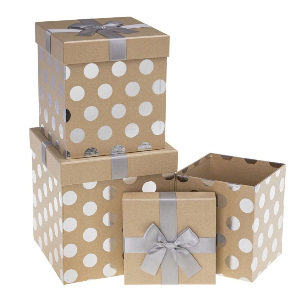 Sada dárkových krabic.Rozměry: 14,5 x 14,5 x 7 cm; 17,5 x 17,5 x 9 cm; 20 x 20 x 11 cm číst celé