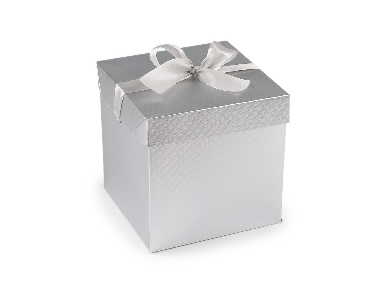 Dárková krabička s mašlí metalická - 1 ks - 1 stříbrná