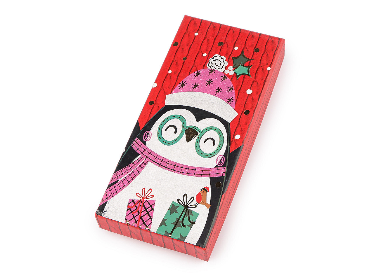 Vánoční dárková krabička s jmenovkou - 1 ks - 1 červená tučňák