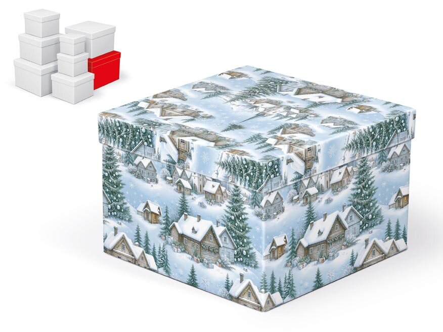 Vánoční dárková krabice o rozměrech 22 x 22 x 15 cmVánoce jsou i o tom, jak dárek působí, když se objeví pod stromečkem. Krabička s motivem zimní vesničky se zasněženými chaloupkami a stromečky dokáže vykouzlit příjemnou atmosféru ještě předtím, než se víko otevře.Tento produkt je k dispozici...