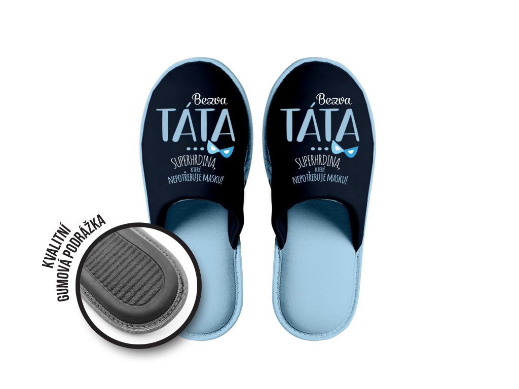 Vtipný nápis „Bezva táta... superhrdina, který nepotřebuje masku!“ ozvláštní každý den a připomene, jak výjimečný a nenahraditelný je právě ten váš táta. Velikost papučí 43-44 je ideální pro běžné nošení doma. Díky měkkému polyesterovému materiálu jsou pohodlné a hřejivé, navíc se snadno udržují.
