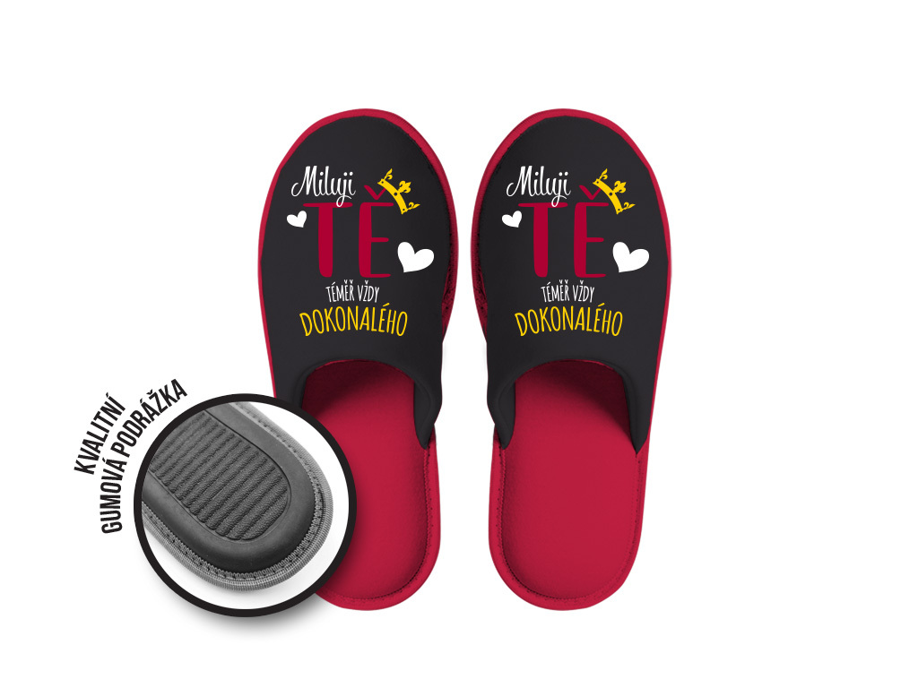 Dárkové papuče s vtipným textem "Miluji Tě téměř vždy dokonalého".