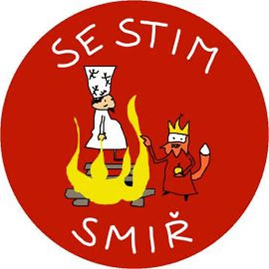 Tuhle placku musíte mít! Zmikund Lucembrusky, jeden z největších velikánů našich dějin a ústřední postava komiksu Opráski sčeskí historje se nepáře s Janem Husem na hranici. Heslo Se stim smiř! už zlidovělo. Kupte si ho na červené placce vydané k 600. výročí upálení mistra Jana Husa.