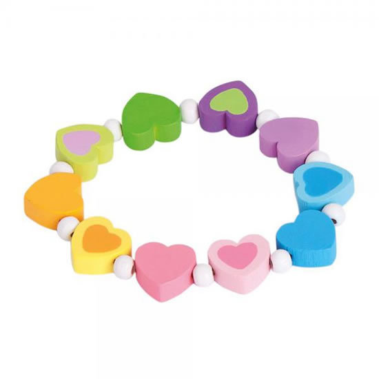 Vyjádřete svojí lásku Vašemu drobečkovi náramkem plným srdíček. Dřevěné korálky ve tvaru srdíček hrají všemi barvami duhy.