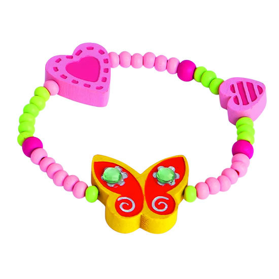 Ozdob svou ručičku motýlkem, který se na Tebe přiletěl podívat. Něžný náramek poskládaný z dřevěých barevných korálků, jimž dominuje překrásný žlutý motýlek a dvě růžová srdíčka. Skvělý dárek pro každou malou princeznu.