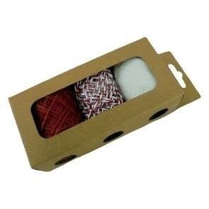 zestaw 3 artykułów: papierowa rafia - 10m, dwukolorowy sznurek z papieru - 10m, sznurek konopny - 10m, zapakowy w kartonowe pudełko z okienkiem