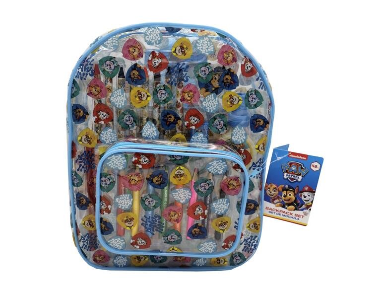PAW PATROL: Ten zestaw aktywności z plecakiem zawiera różne akcesoria do rysowania i artykuły papiernicze.