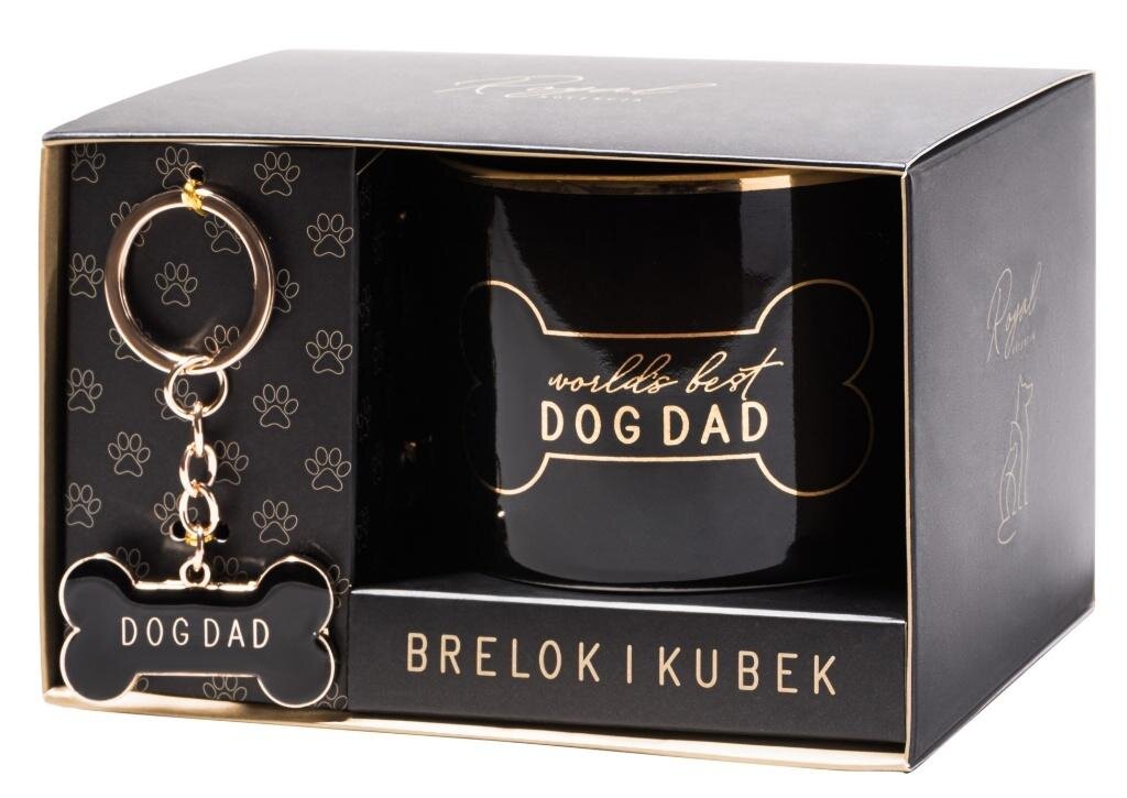 Elegancki i wyjątkowy prezent dla miłośników zwierząt od Be Happy Gifts. W skład zestawu wchodzi wyjątkowy kubek i brelok z dedykowanym grawerem Dog Dad widocznym na zdjęciu. Całość zamknięta jest w eleganckim, czarnym pudełku prezentowym z motywem złotych łapek. Kubek ma pojemność 250 ml i został wykonany z wysokiej jakości ceramiki. Brelok doskonale sprawdzi się w parze z kluczami lub jako przypinka. To wyjątkowy prezent dla ludzi, którzy szczególnie cenią sobie zwierzaki w swoim życiu. SPECYFIKACJA KUBKA: Dedykowany grawer Dog Dad Materiał: Ceramika Pojemność: 250 ml Wysokość: 10 cm Szerokość: 7,7 cm Uwaga: ZABRONIONE JEST W ZMYWARCE! SPECYFIKACJA BRELOKA: Dedykowany grawer Dog Dad Średnica: 32mm Kolor: Czarno-złoty Materiał: metal, epoksyd Świetny dodatek do kluczy lub portfela ZESTAW W SKRÓCIE: Ceramiczny kubek wysokiej jakości z dedykacją Designerski brelok z dedykacją Prezentowe pudełko
