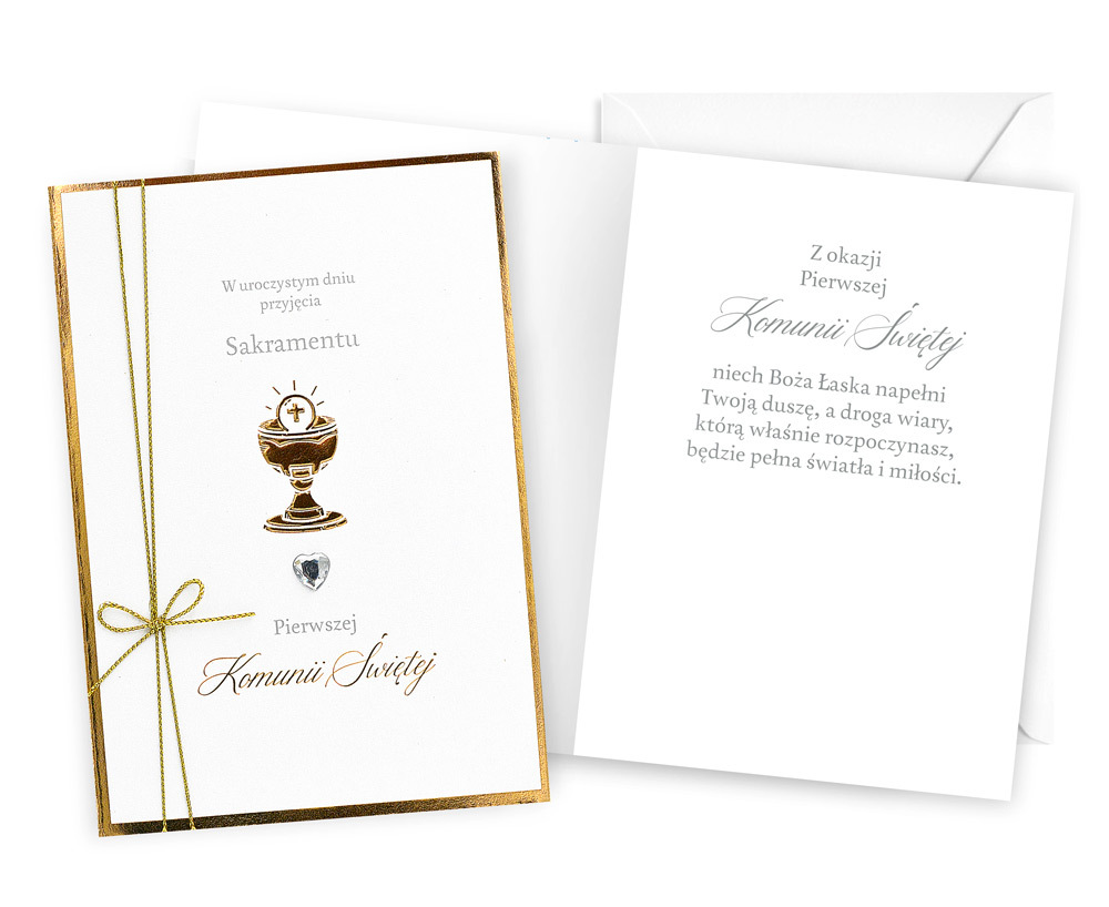 Kartka B6 z ozdobnej serii Dream Cards na Komunię - nieduża, ale robi wrażenie dzięki atrakcyjnej kolorystyce i ciekawym zdobieniom.