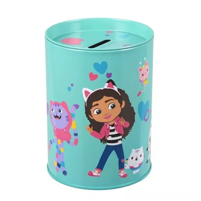 Skarbonka Koci domek Gabi. Metalowa okrągła.