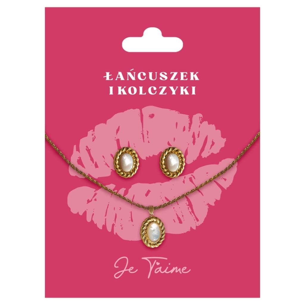 "Pozłacany zestaw biżuterii na Walentynki - łańcuszek i kolczyki Elegancki zestaw biżuterii, który zachwyci każdą kobietę. Pozłacany łańcuszek i kolczyki o delikatnym owalnym kształcie dodają blasku i subtelnie podkreślają urodę. Wykonane ze stopu cynku i metalu, pięknie lśnią w świetle, oferując ponadczasowy urok. Zestaw zapakowany na eleganckiej podkładce, gotowy do wręczenia na Walentynki. To idealny wybór dla kobiety ceniącej klasykę z romantycznym akcentem. SPECYFIKACJA: Pozłacany łańcuszek i kolczyki Romantyczna podkładka Stop cynku i metalu Kolor: złoty"