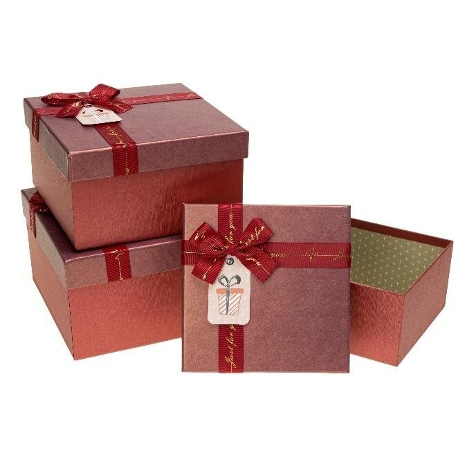 Zestaw pudełek prezentowych z kokardą 3szt czerwony