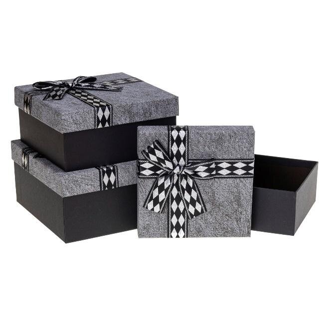Pudełko prezentowe z kokardą 3szt szary ROZETTE