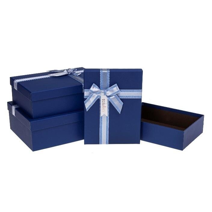 Pudełko prezentowe z kokardą 3szt niebieskie ROZETTE