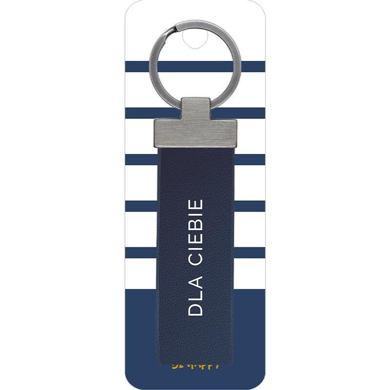 Stylowy brelok męski z dedykacją (jak na zdjęciu) to praktyczny i elegancki dodatek idealny do kluczy, portfela, kluczyków samochodowych czy plecaka. Wykonany z ekologicznej imitacji skóry, cechuje się wysoką jakością i dbałością o detale. Jego klasyczna, męska kolorystyka sprawia, że doskonale sprawdzi się jako prezent na urodziny, imieniny i inne wyjątkowe okazje.