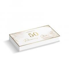 Ozdobne Pudełko PD Pamiątka Ślubu- to doskonały sposób na estetyczne i wyjątkowe zapakowanie banknotu lub karty podarunkowej. Jego klasyczny design podkreślają złote zdobienia, które dodają mu szyku i podniosłego charakteru. Magnetyczne zamknięcie sprawia, że pudełko można wielokrotnie otwierać i zamykać, a starannie dobrane życzenia w środku czynią je idealnym wyborem na szczególne okazje. Wymiary produktu: 18 cm x 9 cm Zamknięcie: magnetyczne Wnętrze: eleganckie życzenia w środku