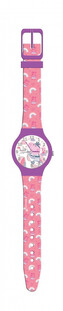 Zegarek analogowy z wszystkimi cyframi godzin na tarczy. Posiada 3 wskazówki - godzinową, minutową oraz sekundową. Długość zegarka z paskiem: 22,5 cm. Średnica tarczy z obudową: 3,5 cm. Zapakowany w ozdobną metalową puszkę, która idealnie nada się na prezent. Wiek: 3+. Wymagane baterie: 1 szt....