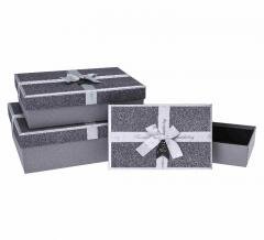 Pudełko prezentowe z kokardą 3szt srebrny ROZETTE