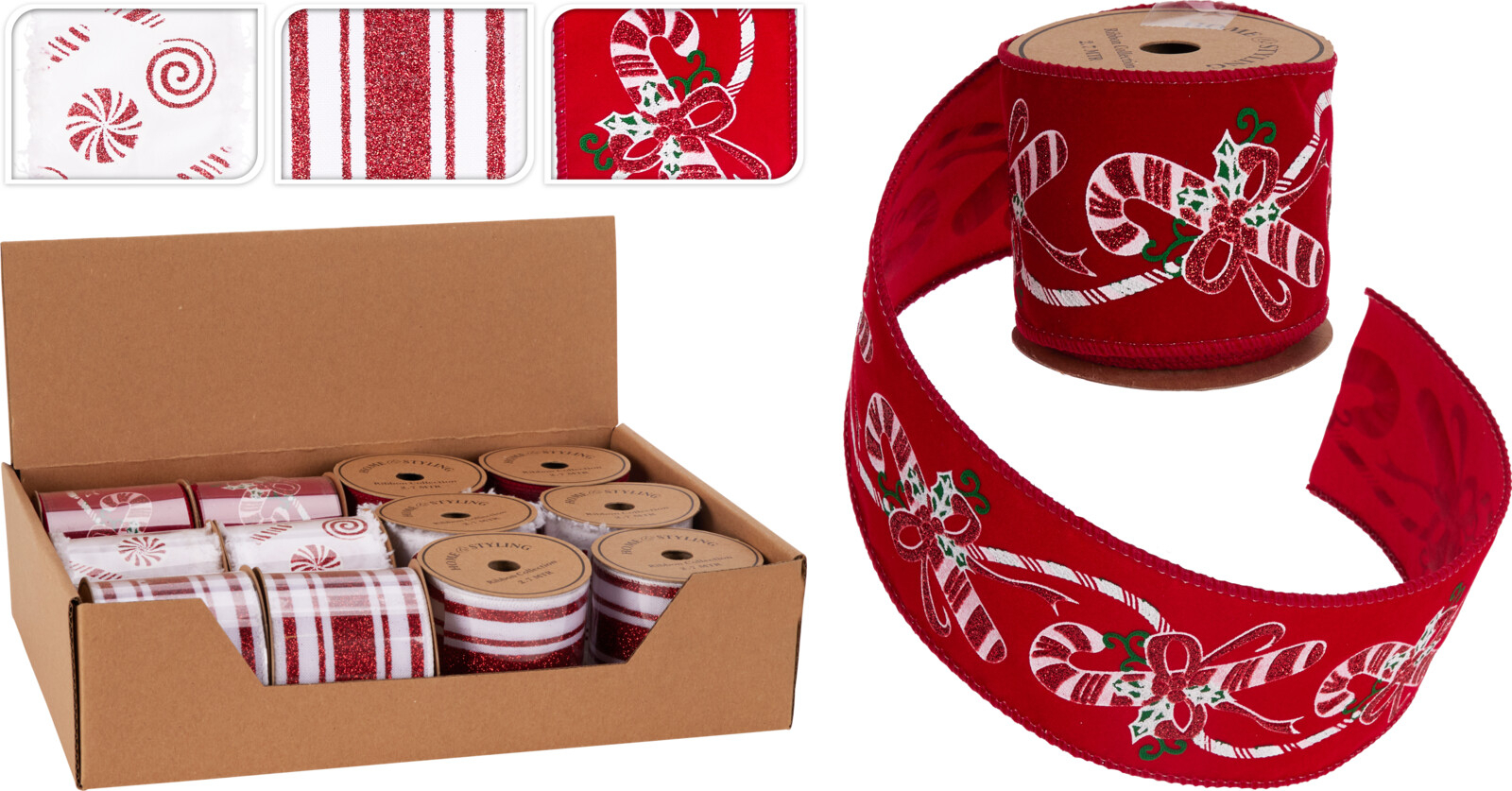 WSTĄŻKA 270X6CM CZERWONO-BIAŁA 3 RODZAJE