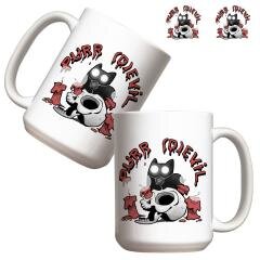 Purr (D)Evil - kawał kota z piekła rodem! Gdy Twój poranek potrzebuje mocy... i może odrobiny chaosu. Kubek idealny dla tych, co zamiast ,,miau" mówią ,,muahahaha". Pojemność: 440ml Wysokość: 120 mm Średnica: 85 mm Materiał: ceramika číst celé