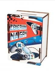 Drewniana, ekologiczna skarbonka dla gracza z ciekawą grafiką i hasłem Zbieram na gry. Posiada specjalny otwór na górze do wrzucania monet i banknotów. Skarbonka CRESCO to świetny prezent, który uczy oszczędności młodego człowieka. Skarbonka nie zawiera zawartości, ale po zakupie jest od razu...