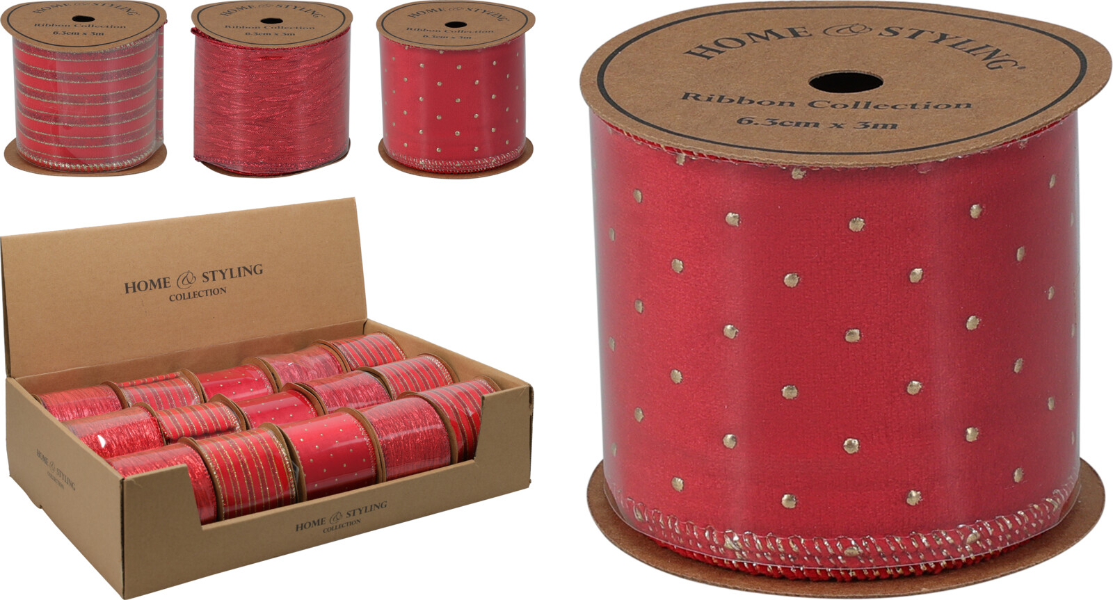WSTĄŻKA 6,3 CM X 3 M CZERWONA 3ASS