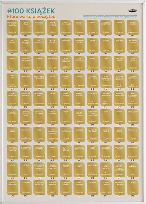 Wyselekcjonowane tytułyPrzeczytaj i zdrap!Nasza autorska lista 100 najlepszych książek skrywa 100 kreatywnych grafik z nimi związanych By je odkryć, poznaj każdy z tytułów i zdrap odpowiednie pole! Zaskoczymy każdego, od tych najwytrawniejszych, po przygodnych czytelników wszystkim pozwolimy...