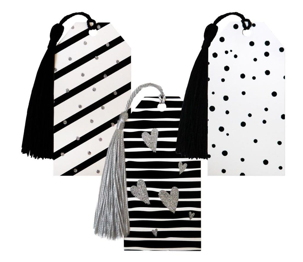 Tagi prezentowe z chwostem biało-czarne 6szt