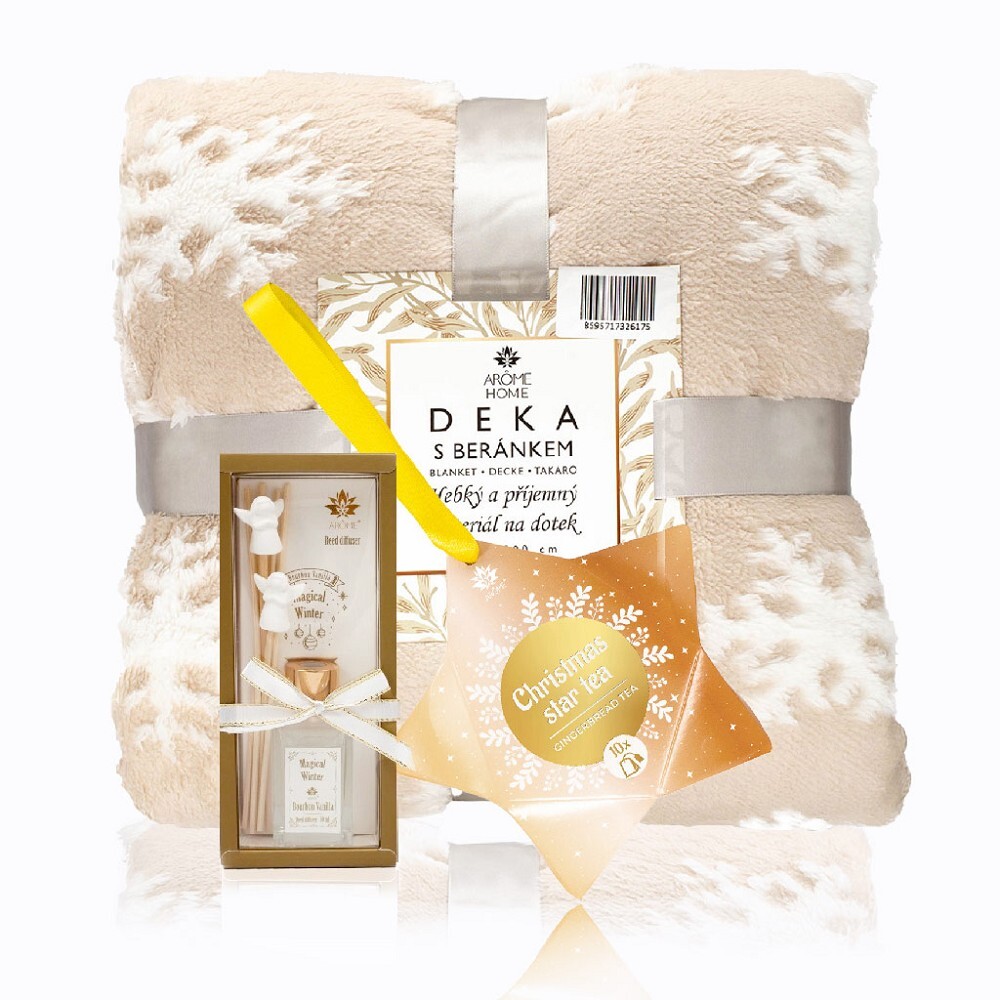 HOME ELEMENTS Vánoční set beránková deka Vločka , čaj hvězda a difuzér
