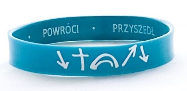 Opaska silikonowa na rękę:dla dorosłychszerokość: 1,2 cmz tekstem po obu stronachz symbolem oznaczającym "Jezus - przyszedł, umarł, zmartwychstwał, wstąpił, powróci" číst celé