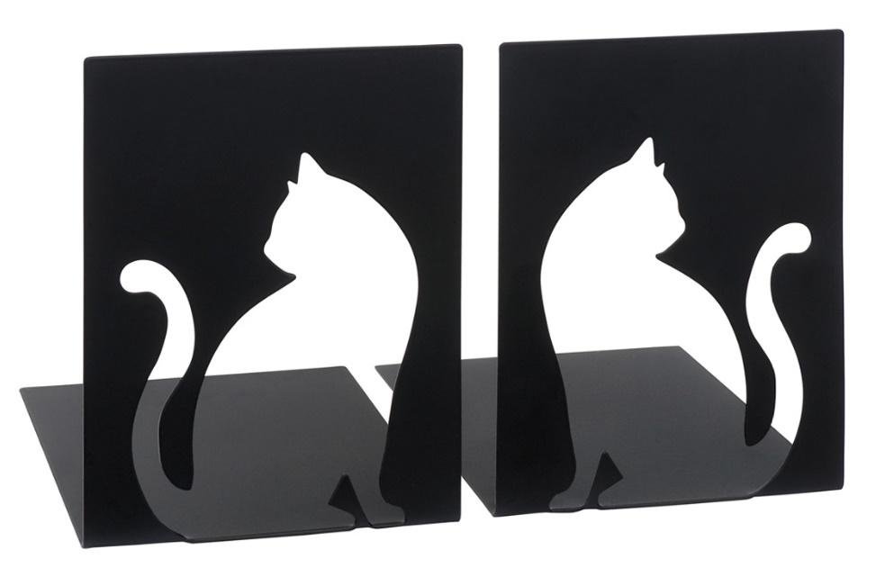 Metalowe Podpórki do książek - Koty. Eleganckie podpórki zapewnią porządek na każdej półce. Elegancki design uatrakcyjni każde pomieszczenie. Metalowe o wysokiej jakości i wytrzymałości podtrzymają nawet ciężkie książki. Matowy czarny kolor i artystyczne wykrojenie dodaje elegancji. Dekoracyjne opakowanie sprawia, że mogą stanowić idealny prezent. W zestawie: dwa szt.