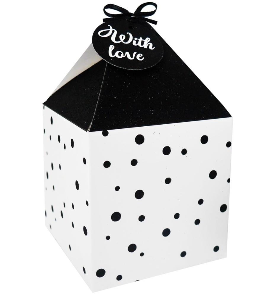 Pudełko na prezenty 11x11 biało-czarne kropki 4szt