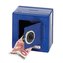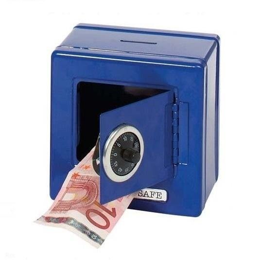 - Kovová skarbonka ve tvaru sejfu v modrém provedení
