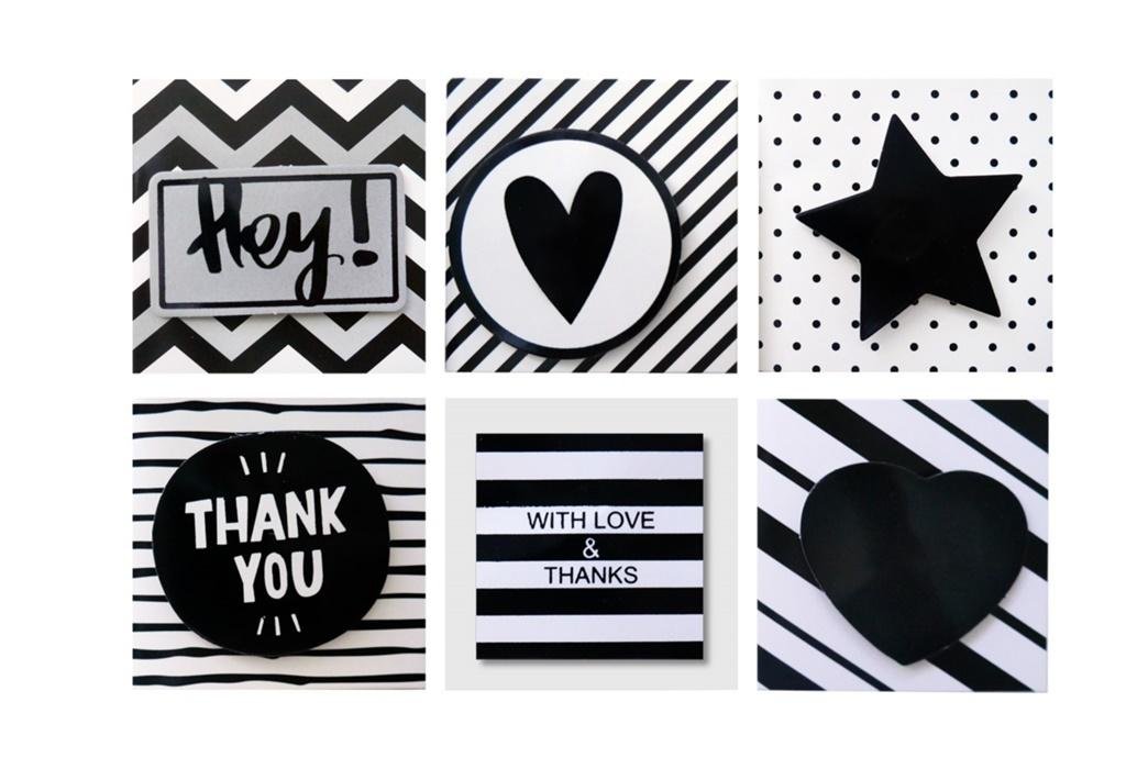 Zestaw 12 sztuk biało-czarnych, samoprzylepnych karnetów do podpisywania prezentów číst celé