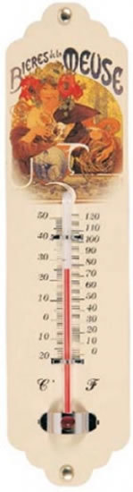 Teploměr s motivem Alfonse Muchy balený v papírové krabičce. číst celé