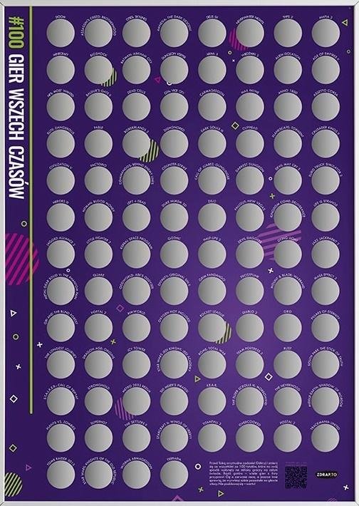 Było ciężko, ale wybraliśmy 100 genialnych gier, które powinien poznać każdy szanujący się gracz. Sięgnęliśmy do wielu źródeł i udało nam się przygotować listę jak żadna inna! Plakat skrywa 100 kreatywnych grafik związanych właśnie z tymi grami. By je odkryć, poznaj każdy z tytułów i zdrap odpowiednie pole!