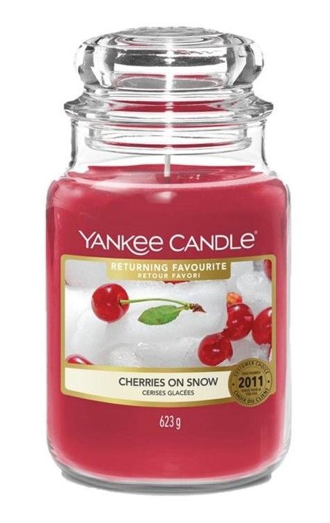 (Třešně na sněhu) Kouzelná a osvěžující směs šťavnatých zralých třešní se sladkými mandlemi a ledovou svěžestí. Charakter vůně: Ovocné Hlava: ovoce, třešně, mandle, sladký citrus Srdce: skořice, kandované třešně Základ: pižmo Doba hoření 110 - 150 h. Economy balení - nejvýhodnější cena na hodinu hoření! Klasický a nejoblíbenější design svíček Yankee Candle se skleněným víčkem. Vyrobeno za použití nejlepších surovin, včetně čistých přírodních vonných výtažků. Rovnoměrně a zcela provoněný parafín v potra zcela provoněný parafín v potravinové kvalitě. Každý knot je ručně narovnán.